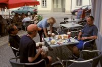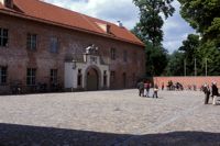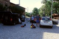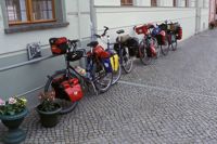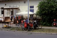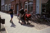 Im Schloßhof Storkow | Pedalreparatur vorm Fahrradladen |