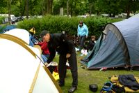 Einheimische Bevölkerung hilft beim Übergang ins öffentliche Straßennetz |