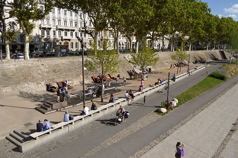 Blick von der Passerelle du Collège auf den Rhône-Radweg